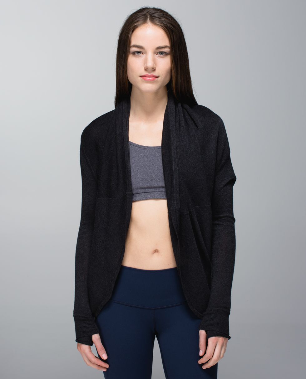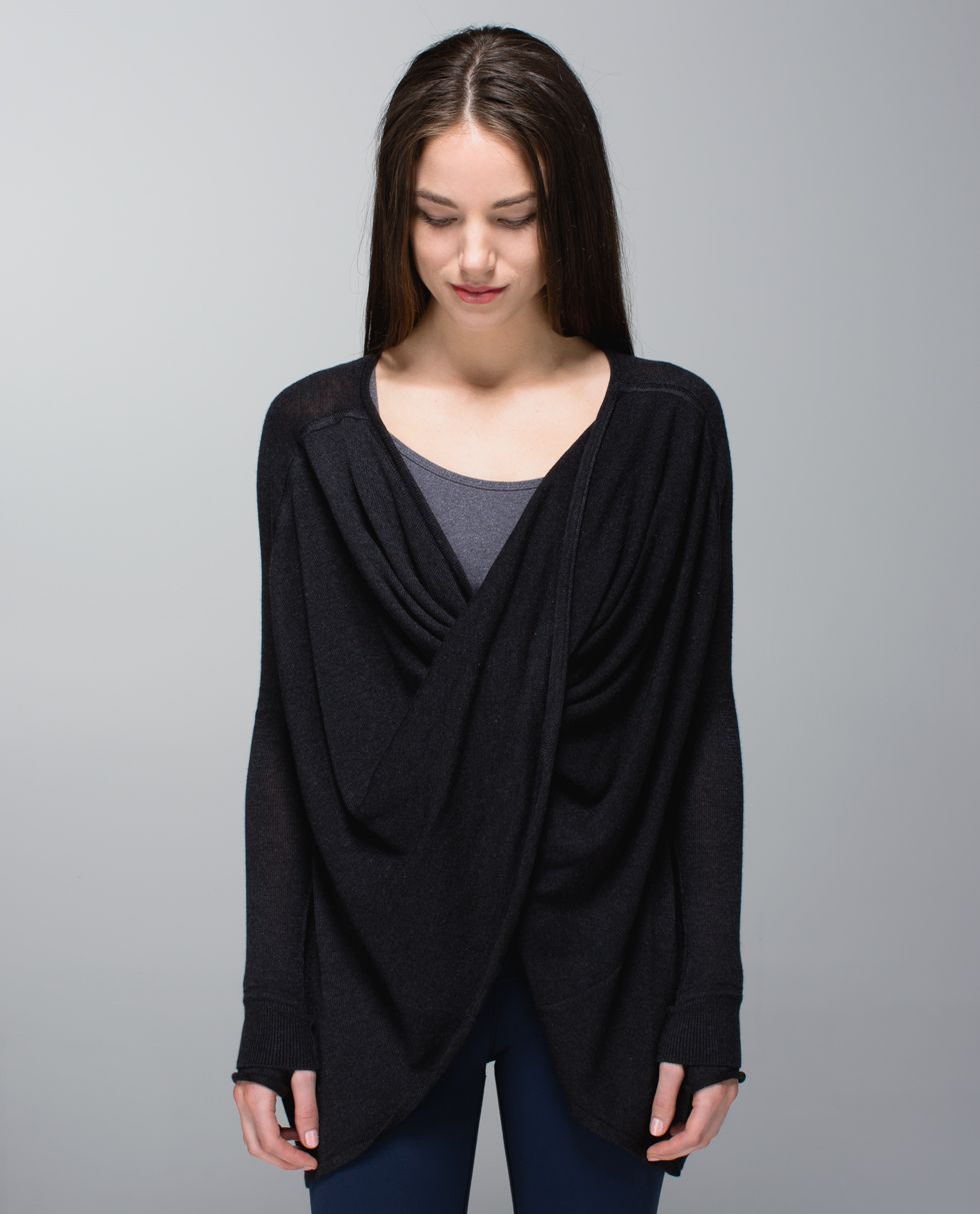 I was meandering around Lululemon recently and happened upon the PERFECT nursing sweater/top. It's a little bit pricey but it's hard to imagine I'm not going to be wearing it every other day. The "twist & wrap" top can be worn in two different ways (sweater and cardigan style) and is loose everywhere except the arms (perfect for pregnancy and post-pregnancy weight changes). I'm in love. It's a great top whether you're expecting, nursing, or just want a cozy sweater.